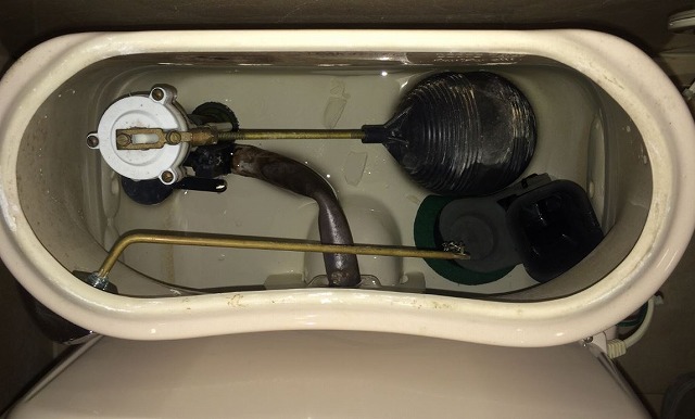 止水不良のため、新型ボールタップとフラッパーゴムの取替え作業。